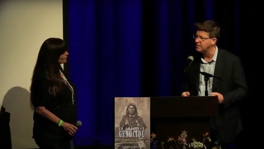 Historian Benjamin Madley discussed his groundbreaking book An American Genocide, which documents California’s role in genocidal policies against Indigenous peoples. He and Tribal Spokesperson Shelly Covert also addressed the direct impacts and violence experienced by the NCR Nisenan Tribe.